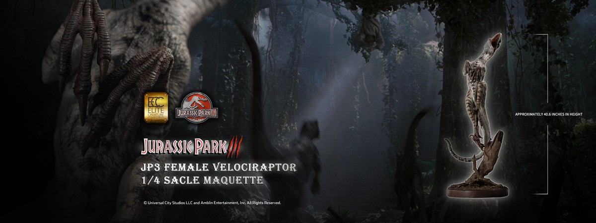Continuing to expand its collection for fans and collectors, Elite Creature Collectibles is proud to present the quarter-scale Female Raptor “White Queen” maquette from Jurassic Park III. Created in collaboration with ECC key artist Oskar Ankarudd—who faithfully recreated the original model at full scale—the paint master was also hand-painted by Ankarudd himself.
