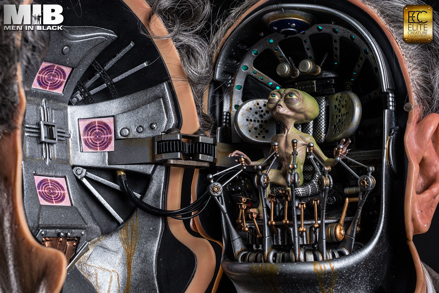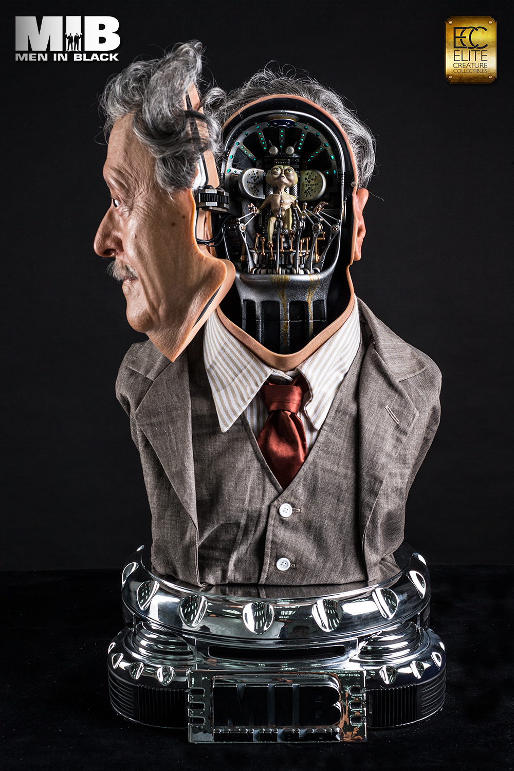 The face of each bust is cast in translucent resin for a life-like skin effect, and comes with custom hair, hand tied mustache and museum grade glass eyes and clothing. The interior cockpit was digitally replicated with stunning accuracy and detail, complete with light up functions. The life size Rosenberg bust is a must-have for all MIB or Sci-fi fans.